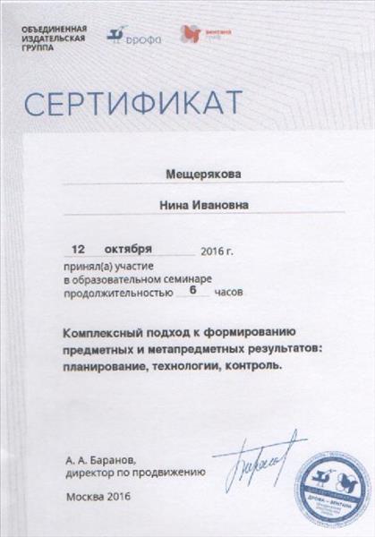 Комплексный подход к формированию предметных и метапредметных результатов: планирование, технологии, контроль